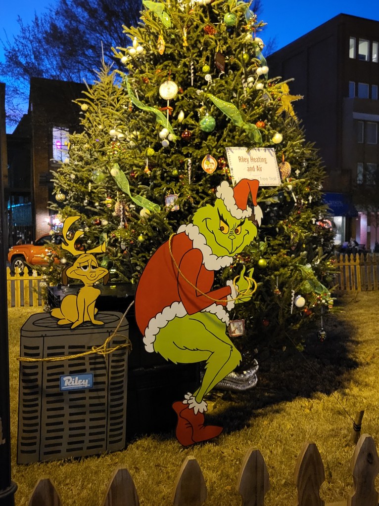 My job, each year, purchases a tree in downtown Columbus to decorate. This year we went with the Grinch as our theme. We even had a live Grinch show up to support us! I made a wood standee of the Grinch pulling a air conditioning unit, with Max sitting on top! It was a lot of fun to put together – to support my company and the event. I can’t wait for next year!
